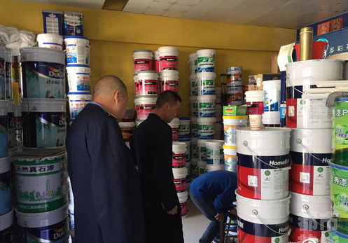 今天早上,西安工商雁塔分局朱雀南路工商所的工作人員,對三森建材城周邊的涂料市場進行了突擊檢查,對兩家商戶的違規(guī)經營行為進行了整改,查獲了4桶嫌商標侵權的涂料產品。對于這些產品,工商部門會進行暫扣,并對涉事商戶進行處理。
