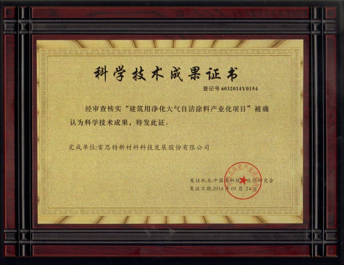 根據國家建材測試中心及中科院生態(tài)環(huán)境研究中心的權威檢測,與會專家一致認可,富思特凈霾涂料可有效去除空氣中的氮氧化物和減少PM2.5的形成,從而降低霧霾的形成,其超親水特性有利于雨水對污染物的沖刷,可達到自潔的效果,從而明顯提高外墻的耐沾污性能,長期保持外墻的裝飾效果。