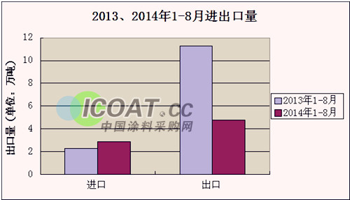 有數(shù)據(jù)顯示,2013年我國1至8月國內(nèi)丙烯酸累計(jì)進(jìn)口量為2.295萬噸,累計(jì)出口量為11.296萬噸,今年我國丙烯酸累計(jì)進(jìn)口量為2.873萬噸,累計(jì)出口量為4.758萬噸,累計(jì)進(jìn)口量比去年同期增長了25.18%,累計(jì)出口量比去年同期卻下降了57.88%。進(jìn)口量的增加,以及出口量的降低也加劇了我國丙烯酸行業(yè)的嚴(yán)峻形勢(shì)。