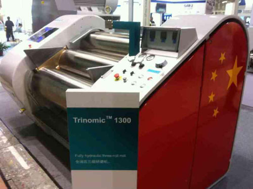 Trinomic1300液壓三輥機主要用于高粘度產品的研磨分散,如單張紙膠印油墨、電子漿料等等
