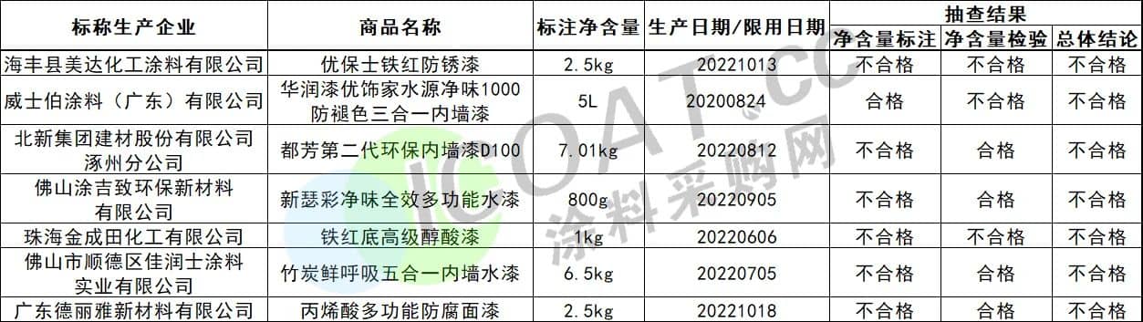 2023年以來部分涂料企業(yè)不合格名錄