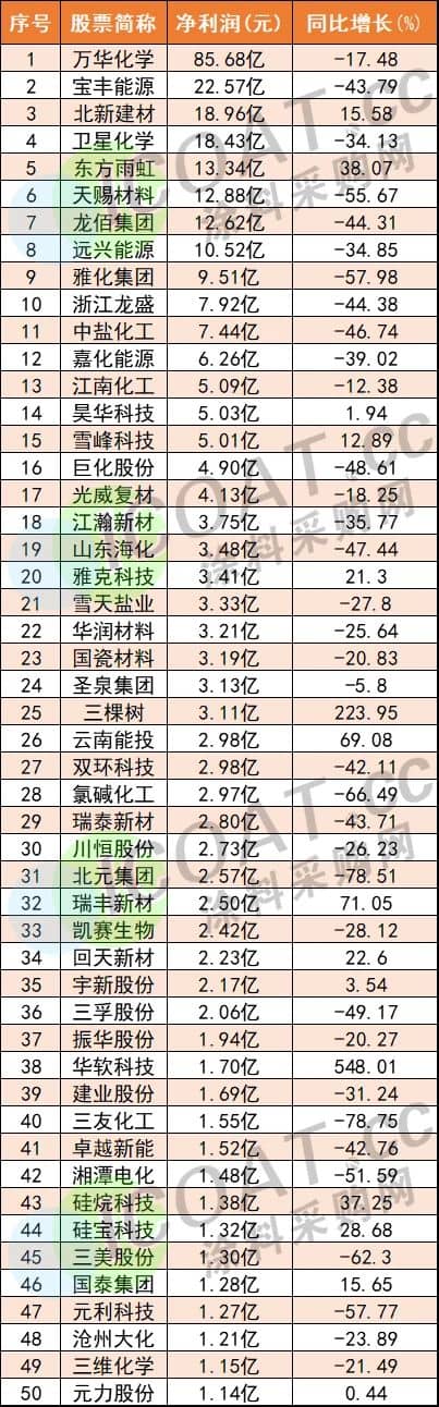 化工凈利TOP50強(qiáng)揭秘!