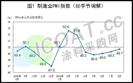 8月份,制造業(yè)采購經理指數(shù)(PMI)為49.7%,比上月上升0.4個百分點;新訂單指數(shù)為50.2%,比上月上升0.7個百分點,表明制造業(yè)市場需求有所改善,制造業(yè)景氣水平進一步提升。