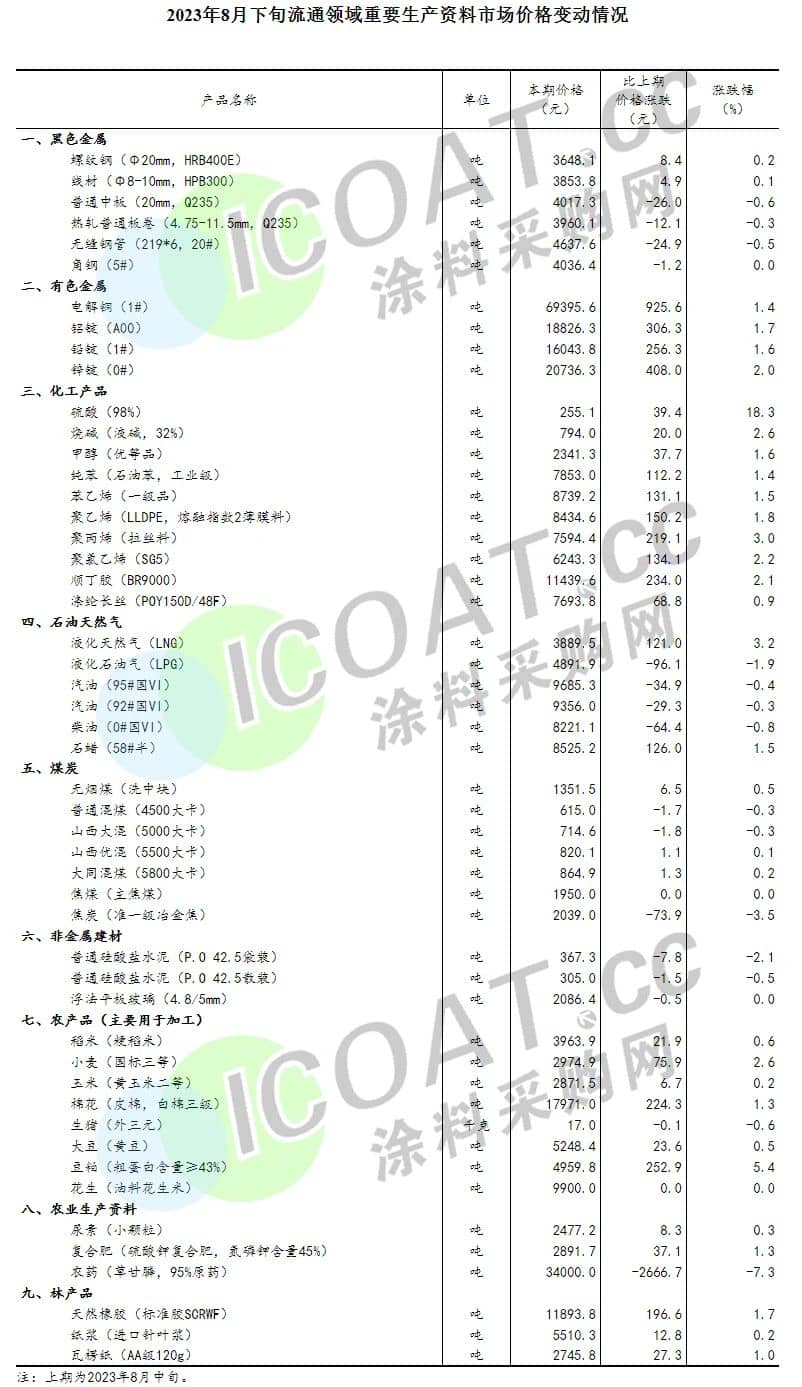 在國際原油價格持續(xù)上漲的刺激之下,很多大宗商品價格都出現(xiàn)了大比例增長。2023年8月下旬與8月中旬相比,全國流通領域9大類50種重要生產資料中,32種產品價格上漲,占比高達64%。