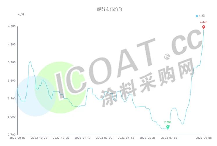 醋酸均價(jià)為4446元/噸,較上一工作日相比上調(diào)242元/噸,漲幅5.76%,單月漲幅32.61%,價(jià)格突破4000元/噸,較年初上漲37.85%,刷新年內(nèi)新高。醋酸市場(chǎng)延續(xù)前期“低庫(kù)存”的利好支撐局面,同時(shí)各廠家仍有超賣預(yù)期,因此目前醋酸市場(chǎng)供應(yīng)持續(xù)緊張,市場(chǎng)現(xiàn)貨資源釋放有限,目前醋酸市場(chǎng)整體庫(kù)存僅為7.05萬(wàn)噸。