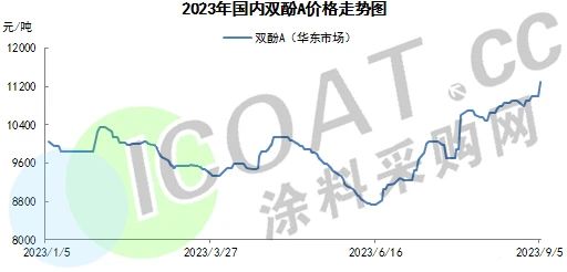 近兩周以來(lái),國(guó)內(nèi)雙酚A現(xiàn)貨市場(chǎng)強(qiáng)勢(shì)上揚(yáng),華東主流報(bào)價(jià)上漲至11675元/噸附近,漲幅8.10%,創(chuàng)年內(nèi)價(jià)格新高,也創(chuàng)下自2022年11月下旬以來(lái)歷史新高。供應(yīng)面緊張利多支撐,主流工廠多交付前期合約訂單為主,流通至市場(chǎng)資源量有限,貿(mào)易商出貨壓力不大,推漲情緒仍存,貿(mào)易商隨著工廠方面積極調(diào)漲報(bào)盤。截止9月7日,國(guó)內(nèi)雙酚A行業(yè)產(chǎn)能利用率在60%附近,為今年以來(lái)新低。