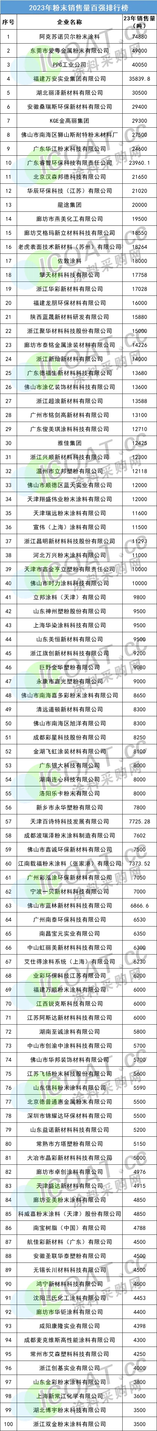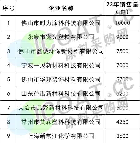 2023年粉末涂料銷量百強(qiáng)榜新上榜企業(yè)