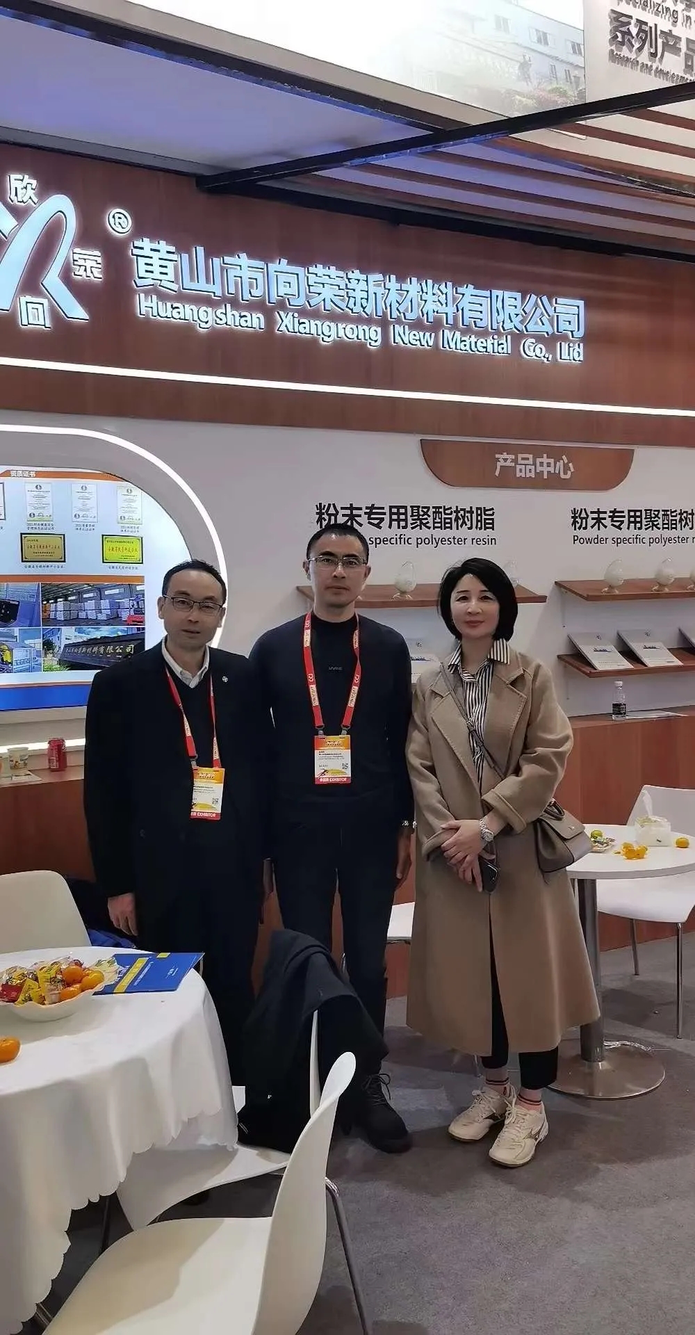 涂料采購網(wǎng)張馨元(右)與向榮新材料錢總(左)、張總(中)合影