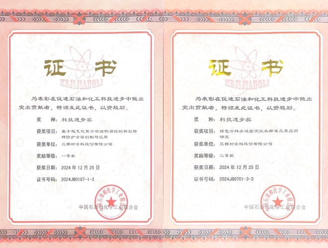 三棵樹斬獲中國石油和化學工業(yè)聯(lián)合會兩項科技進步獎