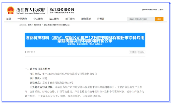 近期,嘉興市生態(tài)環(huán)境局發(fā)布的《湛新科技材料(嘉興)有限公司年產(chǎn)12萬噸節(jié)能環(huán)保型粉末涂料專用聚酯樹脂項(xiàng)目環(huán)境影響評(píng)價(jià)公示》,在行業(yè)內(nèi)引發(fā)了廣泛關(guān)注。該項(xiàng)目規(guī)劃全面,涵蓋了生產(chǎn)主車間、公用系統(tǒng)、行政辦公樓及門衛(wèi)等一系列設(shè)施建設(shè)。項(xiàng)目配備先進(jìn)的反應(yīng)釜、鋼帶、導(dǎo)熱油鍋爐以及環(huán)保處理設(shè)施,致力于打造高效、環(huán)保的生產(chǎn)流程,實(shí)現(xiàn)12萬噸/年的產(chǎn)能目標(biāo)。