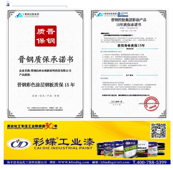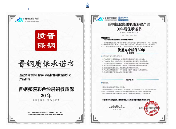 在建筑材料的演進歷程中,彩涂鋼板以卓越的性能和美觀的外觀,已成為現(xiàn)代建筑不可或缺的重要材料。作為行業(yè)領(lǐng)軍企業(yè),晉鋼控股集團憑借雄厚的技術(shù)實力和嚴(yán)格的質(zhì)量管控,推出了高端彩涂產(chǎn)品。其中晉鋼彩色涂層鋼板質(zhì)保15年,晉鋼氟碳彩色涂層鋼板質(zhì)保30年,樹立了行業(yè)新標(biāo)桿。這一突破性的質(zhì)保承諾,不僅彰顯了晉鋼對產(chǎn)品品質(zhì)的自信,更體現(xiàn)了企業(yè)推動行業(yè)高質(zhì)量發(fā)展的責(zé)任擔(dān)當(dāng)。
