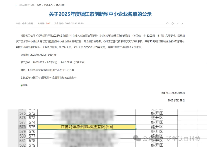 本次復核工作嚴格遵循“優(yōu)中選優(yōu)”原則,重點考察企業(yè)創(chuàng)新性、專業(yè)化及成長性。其中,江蘇特豐新材料科技有限公司通過市創(chuàng)新型中小企業(yè)復核,持續(xù)展現(xiàn)技術領先優(yōu)勢。特豐在此次核查周期新增申請專利10件、授權發(fā)明專利7件,其中特豐新材自主研發(fā)的聚碳酸酯工程塑料級鈦白粉DR-2688則突破鈦白粉與聚碳酸酯的界面相容技術瓶頸,顯著提升工程塑料的機械強度與耐熱性,在不同的細分應用領域取得了不俗的成績。公示名單顯示,新增企業(yè)覆蓋高端裝備、新材料、數(shù)字經(jīng)濟等領域,進一步壯大了全市優(yōu)質(zhì)中小企業(yè)梯隊。