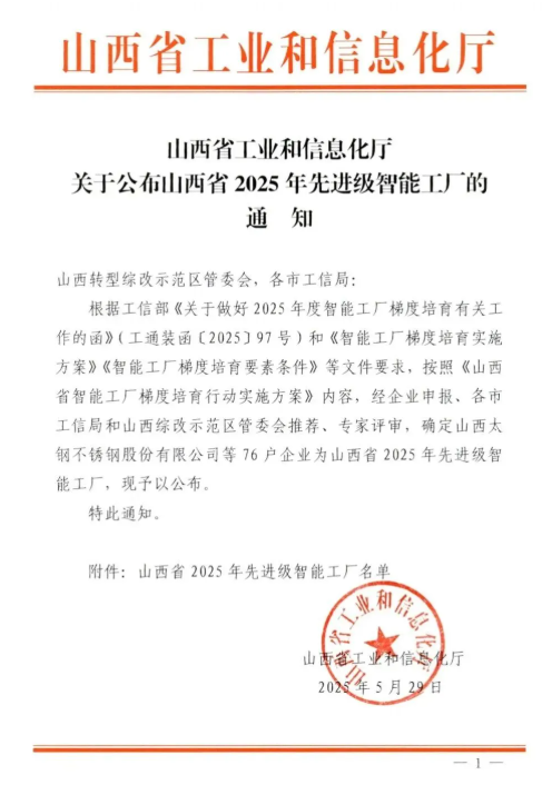 近日,山西省工業(yè)和信息化廳正式公布山西省2025年先進(jìn)級(jí)智能工廠名單,集團(tuán)旗下核心全資子公司——山西永碩新材料科技有限公司憑借卓越的智能制造實(shí)力與創(chuàng)新實(shí)踐成功上榜,為集團(tuán)智能制造領(lǐng)域再添新光彩、注入新動(dòng)能。