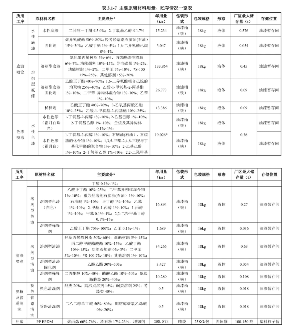 根據(jù)公示信息顯示,本項(xiàng)目年消涂料總量近300噸,分別為年耗水性底漆18.281噸,年消耗溶劑型底漆174.023噸,年消耗水性色漆32.412噸,年消耗溶劑型色漆18.583噸,年消耗溶劑型清漆47.973噸。