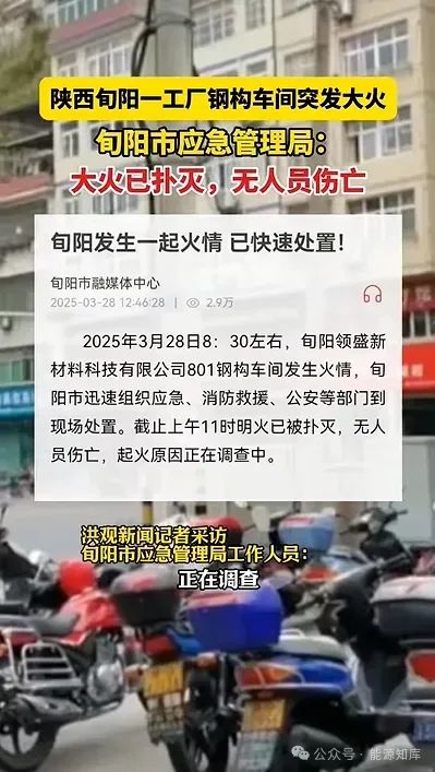 3月28日8:30左右,陜西省旬陽市領(lǐng)盛新材料科技有限公司801鋼構(gòu)車間發(fā)生火情,事故沒有造成人員傷亡。