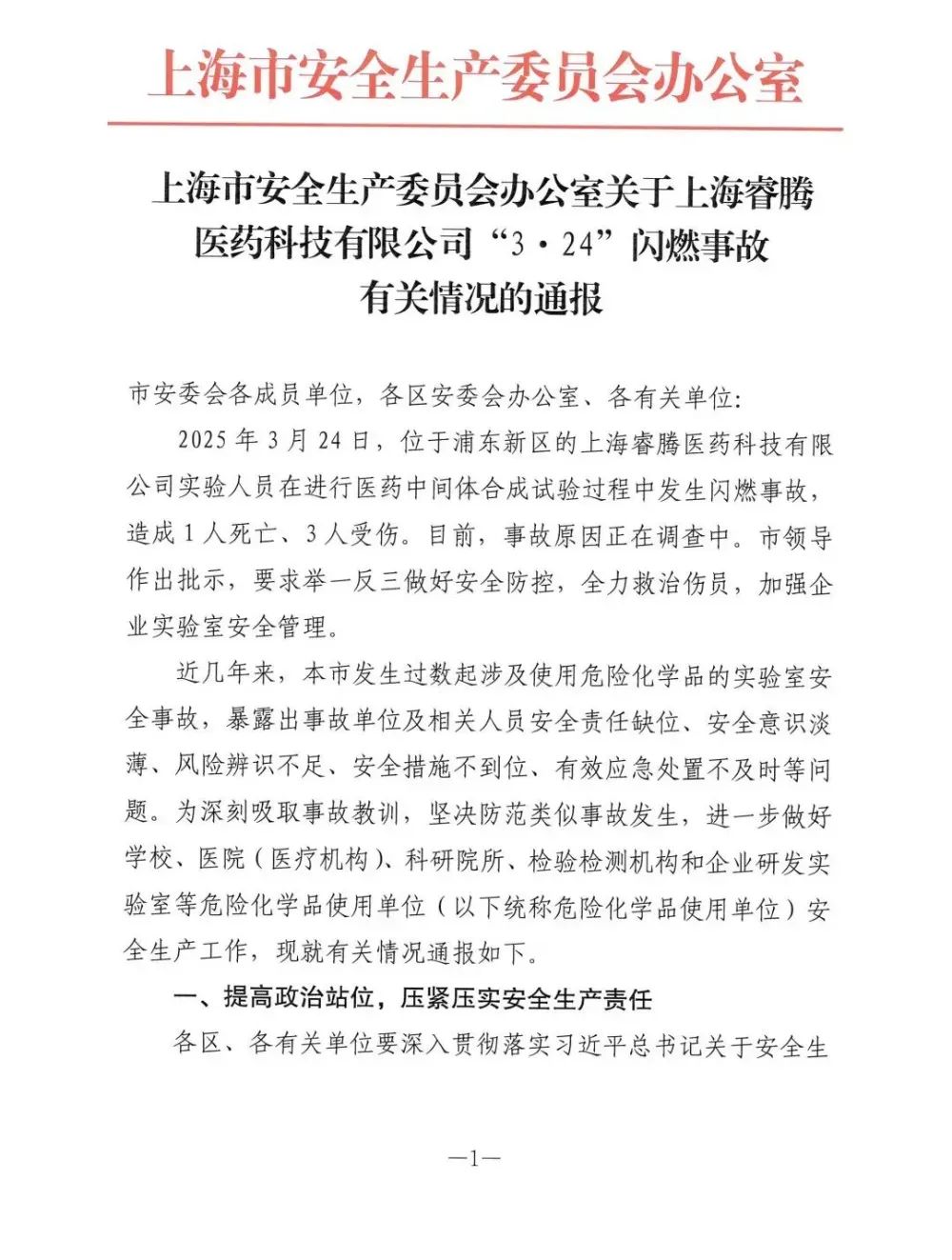 3月24日,浦東新區(qū)一家醫(yī)藥科技有限公司內(nèi)發(fā)生一起閃燃事故。事故造成1人死亡、3人受傷,事故原因正在緊鑼密鼓地調(diào)查當(dāng)中。
