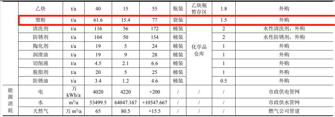 現(xiàn)有項(xiàng)目年產(chǎn)消音器1500萬(wàn)件,年用塑粉量為46.2t/a,本項(xiàng)目不改變產(chǎn)品規(guī)格和塑粉種類(lèi),年新增消音器500萬(wàn)件,因此年新增塑粉使用量15.4t/a。