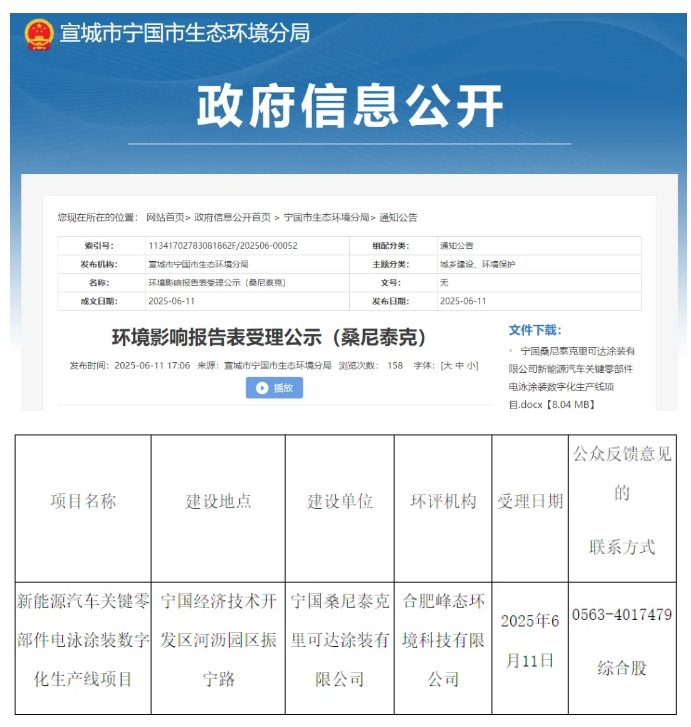近日,宣城市寧國市生態(tài)環(huán)境分局發(fā)布新能源汽車關鍵零部件電泳涂裝數字化生產線項目環(huán)境影響報告表受理公示。
