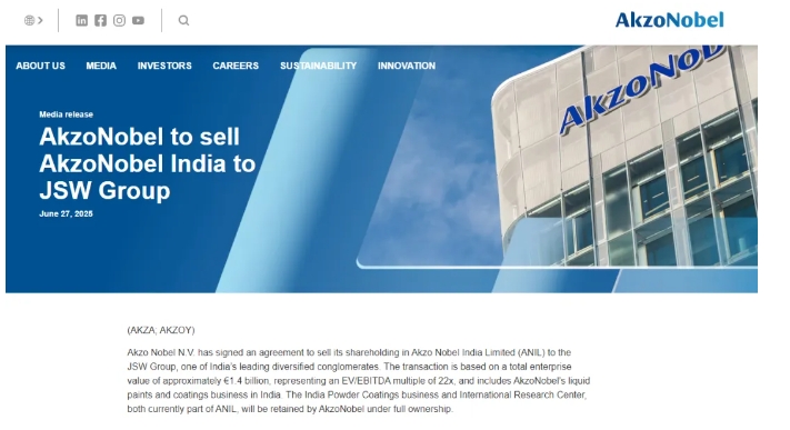 此次資產(chǎn)剝離是2024年10月宣布的戰(zhàn)略投資組合審查的第一步,旨在將公司的資本和能力集中在全球主要涂料市場(chǎng)的領(lǐng)先地位。