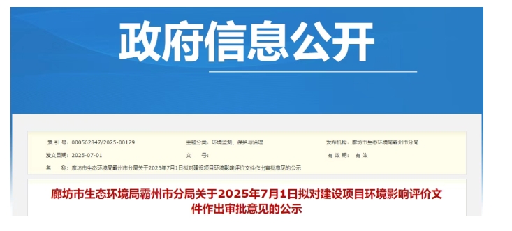 根據(jù)建設(shè)項(xiàng)目環(huán)境影響評價(jià)審批程序的有關(guān)規(guī)定,經(jīng)審議,我局?jǐn)M對1個(gè)建設(shè)項(xiàng)目環(huán)境影響評價(jià)文件作出審批意見。為保證審批意見的嚴(yán)肅性和公正性,現(xiàn)將各建設(shè)項(xiàng)目環(huán)境影響評價(jià)文件的基本情況予以公示。公示期為2025年7月1日。