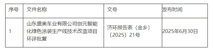 濟(jì)寧市生態(tài)環(huán)境局金鄉(xiāng)縣分局發(fā)布關(guān)于作出山東盛奧車業(yè)有限公司創(chuàng)元智能化綠色涂裝生產(chǎn)線技術(shù)改造項(xiàng)目批復(fù)的公告。