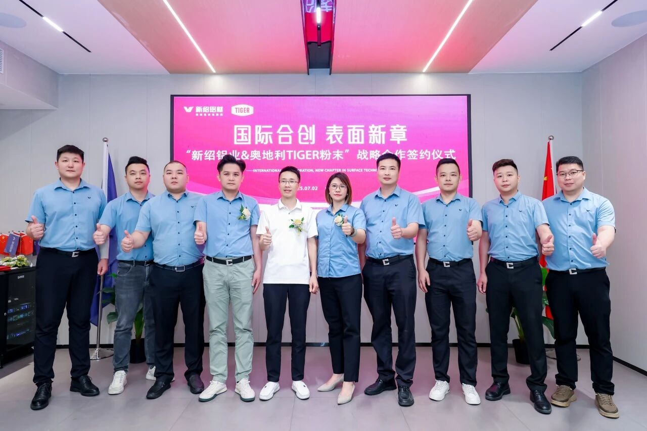 “國際合創(chuàng),表面新章”,新紹鋁業(yè)攜手國際粉末重量級品牌奧地利老虎TIGER,再掀鋁材表面處理品質(zhì)革命,打造高顏高質(zhì)新標桿。