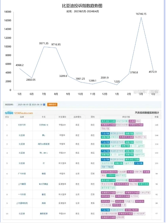 近日,易車網(wǎng)發(fā)布6月車型投訴排行榜,比亞迪入榜5款車型,典型問題包括車身附件及電器、系統(tǒng)升級、服務(wù)流程不完善等,其中不乏與涂料板塊相關(guān)的內(nèi)容。此外,比亞迪曾創(chuàng)下在一年中有8個月登上了車企投訴榜單榜首的“殊榮”,且獲稱“投訴王”稱號。