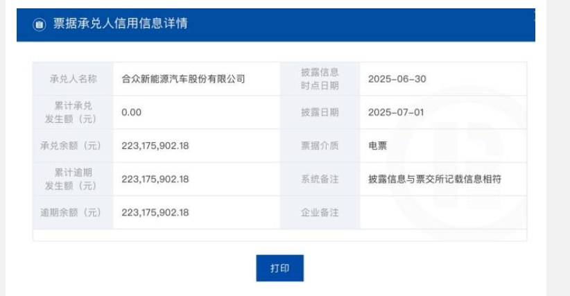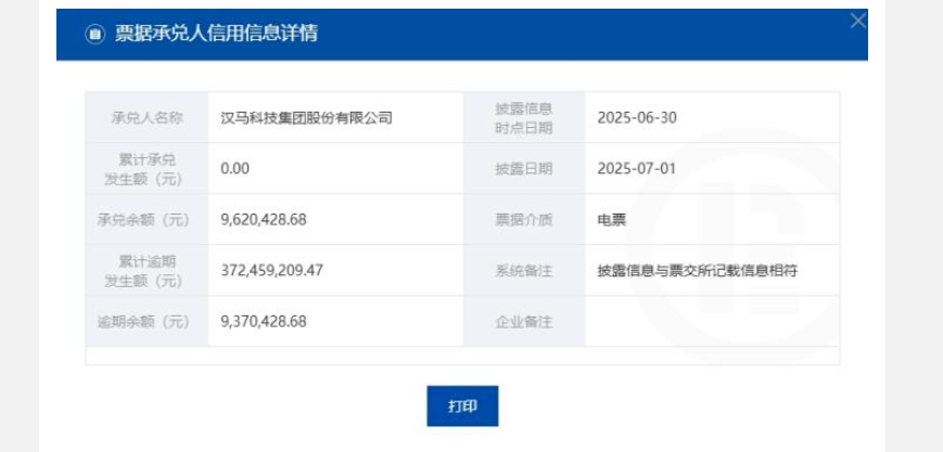 截至 6月30日,吉利集團(tuán)旗下子公司漢馬科技逾期余額為937.04萬元, 累計逾期發(fā)生額達(dá) 3.72億元。票交所已暫停其商業(yè)匯票承兌服務(wù)權(quán)限,企業(yè)須清償全部逾期票據(jù)并完成信用修復(fù)流程后方可申請恢復(fù)。