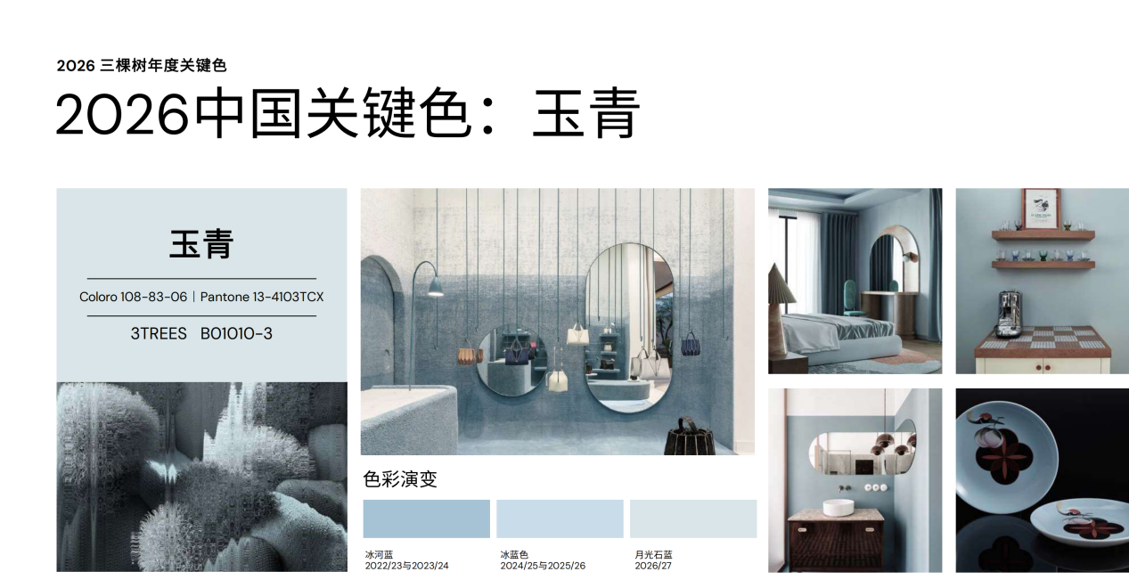 基于對“轉(zhuǎn)向之年”的深度洞察,雙方聯(lián)合發(fā)布三棵樹2026年度關(guān)鍵色「玉青」。這一色彩的誕生,既是科學(xué)算法與人文思考的雙重結(jié)晶,更是「新境」理念的具象化表達(dá)。