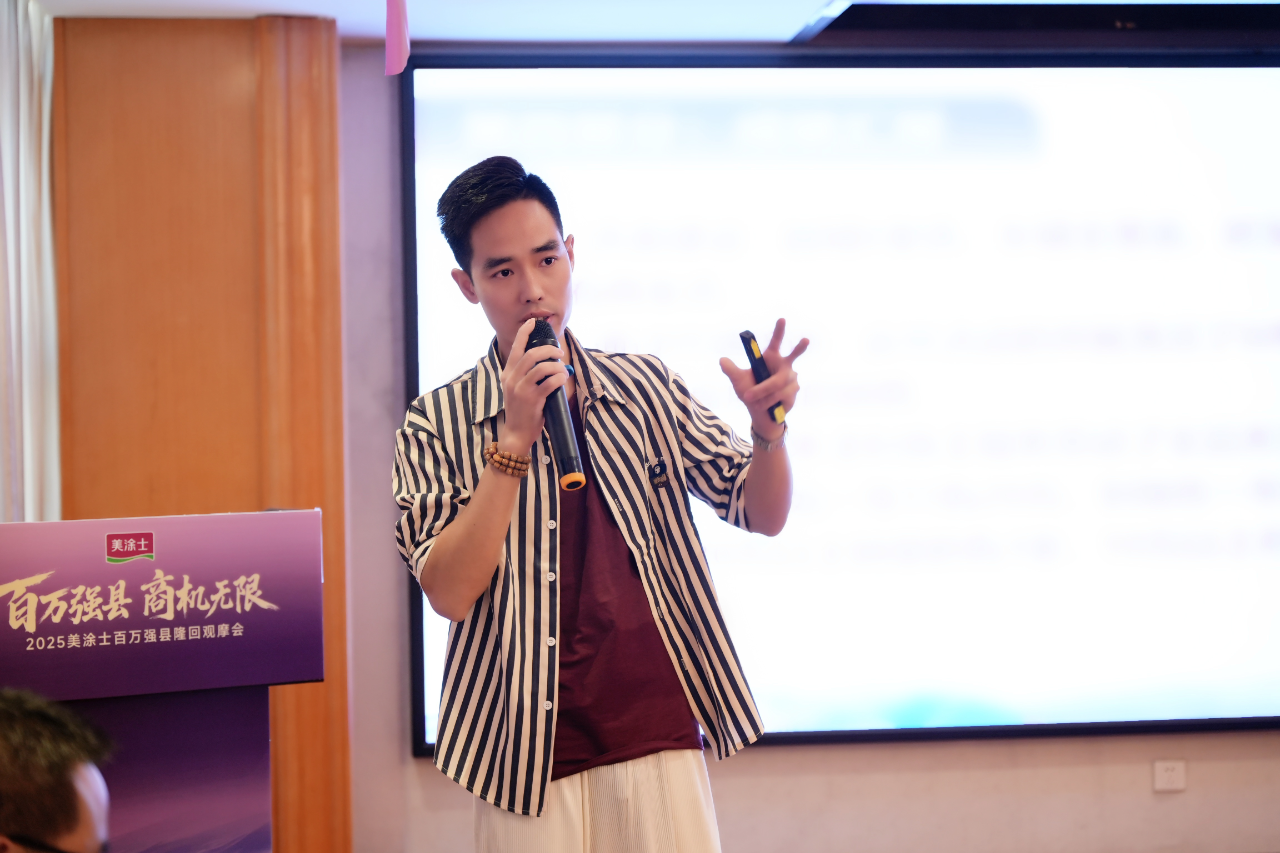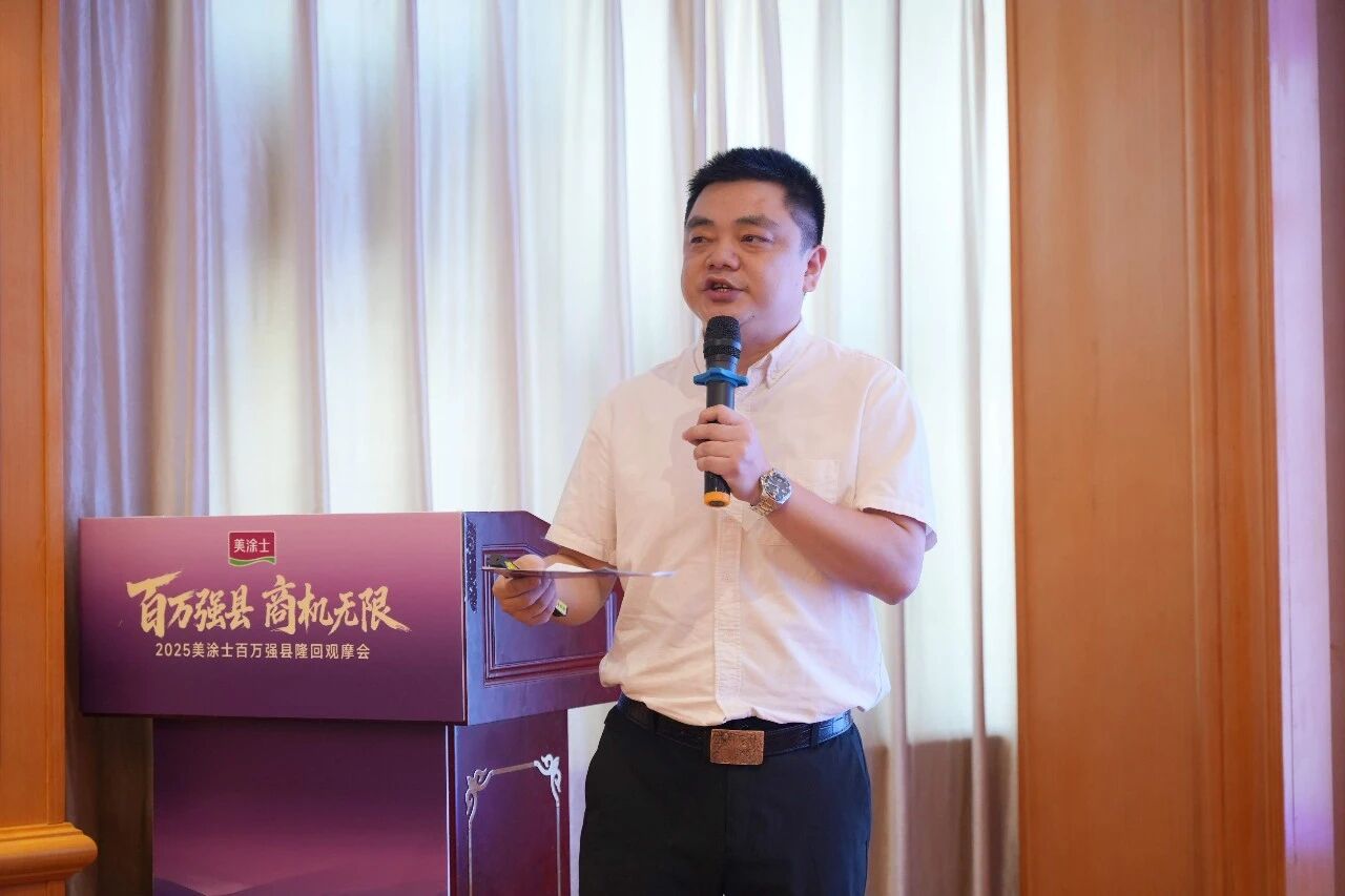 決勝縣域市場(chǎng),打造百萬(wàn)強(qiáng)商。會(huì)上,美涂士集團(tuán)副總裁楊繼軍基于對(duì)縣域市場(chǎng)前景與消費(fèi)特征的深刻洞察,帶來(lái)《百萬(wàn)強(qiáng)縣戰(zhàn)略解碼》主題分享,首次推出的縣域市場(chǎng)經(jīng)營(yíng)“天龍八步”成功秘笈,不僅為參會(huì)人員指明了縣域共贏的戰(zhàn)略方針與行動(dòng)路徑,這套經(jīng)過(guò)市場(chǎng)驗(yàn)證的打法,也將為各合作伙伴開(kāi)拓縣域市場(chǎng),提供了可復(fù)制的經(jīng)驗(yàn)范本。