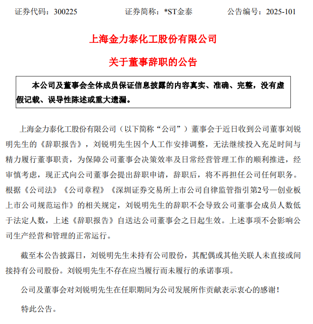 盡管*ST金泰方面稱目前未觸及退市標(biāo)準(zhǔn),但市場(chǎng)層面的異常波動(dòng)與潛在風(fēng)險(xiǎn)仍不容忽視。8月1日至9月1日期間,ST金泰股價(jià)區(qū)間漲幅超59%,在退市風(fēng)險(xiǎn)股中位居第一,成為板塊內(nèi)“黑馬”。股價(jià)上漲背后,圍繞公司的各類爭(zhēng)斗并未停歇,針對(duì)劉銳明就裴劍(劉銳明指稱的公司“幕后實(shí)控人”)、羅甸(公司現(xiàn)任董事、前任董事長(zhǎng))等人涉嫌違法違規(guī)的報(bào)案,公安機(jī)關(guān)已向ST金泰發(fā)出《調(diào)取證據(jù)通知書》,但公司至今未就此事發(fā)布公告。