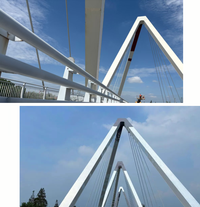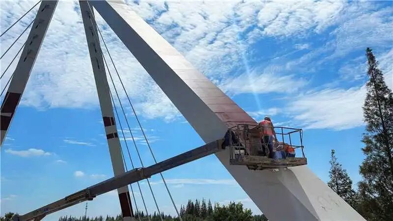項(xiàng)目兼顧視覺(jué)協(xié)調(diào)與地域文化表達(dá),通過(guò)多種顏色定制化調(diào)配,使大橋在煥然一新的同時(shí),保持與生態(tài)景觀的深度融合,漆膜細(xì)膩、質(zhì)感高級(jí),在提升行車(chē)舒適性與安全性的同時(shí),亦成為區(qū)域一道亮麗的風(fēng)景線。