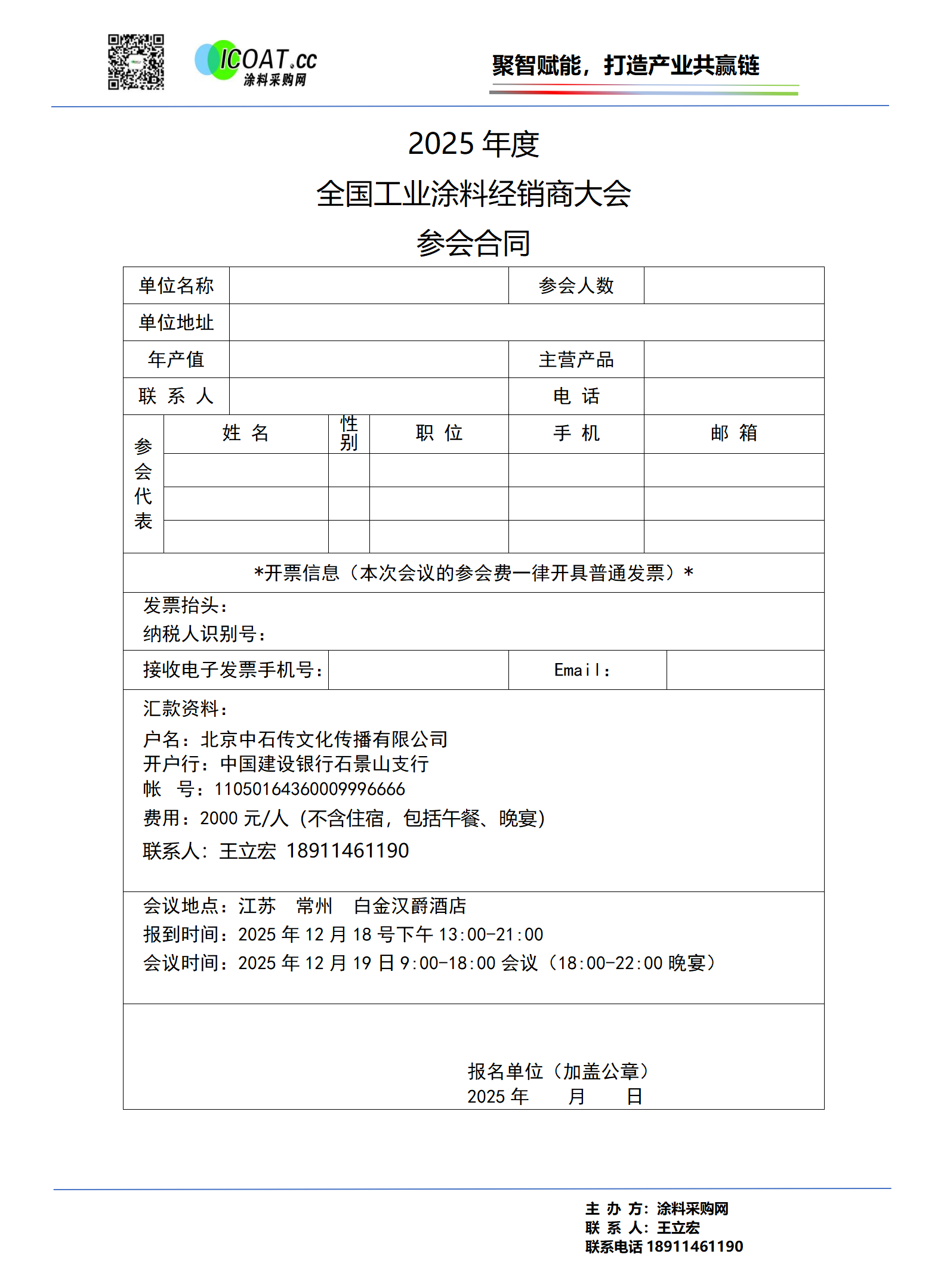 面對(duì)目前涂料上下游產(chǎn)業(yè)的嚴(yán)重內(nèi)卷,距離涂料行業(yè)踐行高質(zhì)量發(fā)展的目標(biāo)越來(lái)越遠(yuǎn)。涂料采購(gòu)網(wǎng)誠(chéng)邀各大涂料油漆、水性工業(yè)漆企業(yè)、全國(guó)各大經(jīng)銷商和代理商、施工企業(yè)、終端用戶、上游原材料及設(shè)備企業(yè)、涂裝等頭部企業(yè)于2025年12月18 日-19日共赴江蘇常州共同舉辦以“聚焦產(chǎn)業(yè)賦能 高質(zhì)量發(fā)展”為主題的“2025年全國(guó)工業(yè)漆經(jīng)銷商全產(chǎn)業(yè)鏈交流大會(huì)”,與涂料行業(yè)全產(chǎn)業(yè)鏈龍頭企業(yè)共同深入探討涂料全產(chǎn)業(yè)鏈的創(chuàng)新、綠色發(fā)展,推進(jìn)產(chǎn)業(yè)集聚,強(qiáng)化品牌建設(shè),實(shí)現(xiàn)涂料行業(yè)的高端化、綠色化、智能化發(fā)展。