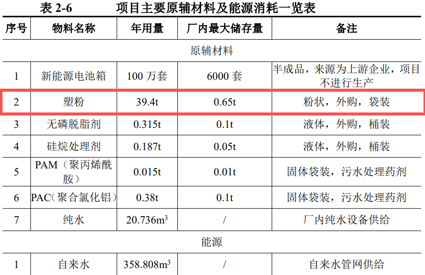 本項(xiàng)目對(duì)外來的新能源電 池箱進(jìn)行脫脂、硅烷化、噴塑處理,不進(jìn)行前期的機(jī)加工,依據(jù)《建設(shè)項(xiàng)目環(huán) 境影響評(píng)價(jià)分類管理名錄》(2021 年版),本項(xiàng)目屬于“三十、金屬制品業(yè) 33-67 金屬表面處理及熱處理加工-其他(年用非溶劑型低 VOCs 含量涂料 10 噸以下 的除外),應(yīng)編制環(huán)境影響報(bào)告表。