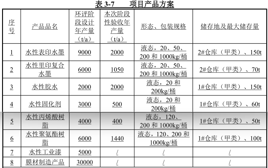 項目名稱:年產水墨及水性膠水、水性工業(yè)漆22000噸、水性固化劑3000噸、水性樹脂10000噸、膜材30000噸建設項目階段性驗收(新建)