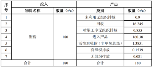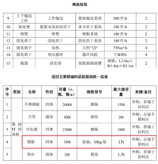 建設(shè)項目塑粉投入及產(chǎn)出一覽表