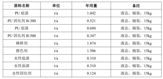 本項(xiàng)目產(chǎn)品主要為噴漆家具,具體產(chǎn)品方案見(jiàn)下表: