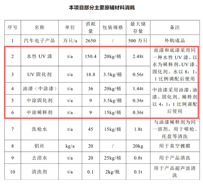 ?、偎訳V漆:本項目水性UV漆、固化劑、水調(diào)配完成后即用狀態(tài)下VOCs含量為8.71%, UV漆調(diào)配后密度約為1.048g/cm3.根據(jù)《色漆和清漆揮發(fā)性有機化合物(VOC) 含量的測定 差值法》(GB/T 23985-2009)中方法3公式可推算得到水性 UV 漆 中 VOCs 的含量為 163g/L(不含水),符合《低揮發(fā)性有機化合物含量涂料產(chǎn) 品技術(shù)要求》(GB/T 38597-2020)中表 4 中 UV 固化涂料金屬基材與塑膠基材 噴涂涂料的 VOCs 限值要求(350g/L)以及《工業(yè)防護涂料中有害物質(zhì)限量》(GB 30981-2020)中表 4 輻射固化涂料噴涂水性漆 VOCs 含量限值要求(400g/L)。