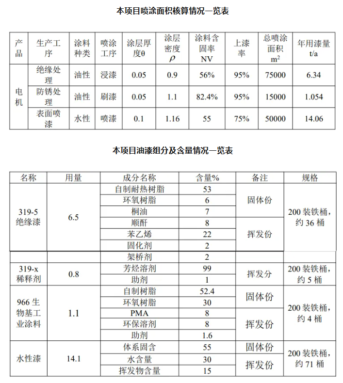 鐵桶規(guī)格為直徑580mm,高度900mm,總容積為237.6L。每個鐵桶裝油漆 裝319-5絕緣漆200L,高度為750mm,小于鐵桶總高度150mm符合。319-5 絕緣漆需要36桶,36*200*0.906=6.523.2噸,符合。319-x稀釋劑采用相同規(guī)格鐵桶,4桶總重量4*200*0.906=0.7244噸小于0.8噸,5桶總重量 5*200*0.906=0.906噸大于0.8噸,5桶用量符合。966生物基工業(yè)涂料采用相同規(guī)格鐵桶,6桶總重量4*200*1.42=1.136噸大于1.1噸,符合。水性漆采用相同規(guī)格鐵桶,71桶總重量71*200*1=14.2噸。符合根據(jù)以上分析,本項目理論319-5絕緣漆6.34 噸、319-x稀釋劑0.8噸966生物基工業(yè)涂料1.054噸、水性漆用量為14.06t/a,與建設單位提供的319-5絕緣漆6.5噸、319-x稀釋劑 0.8噸966生物基工業(yè)涂料1.1噸、水性漆用量為14.1t/a, 基本相符。
