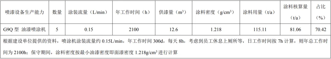 本項目油漆產(chǎn)能核算表