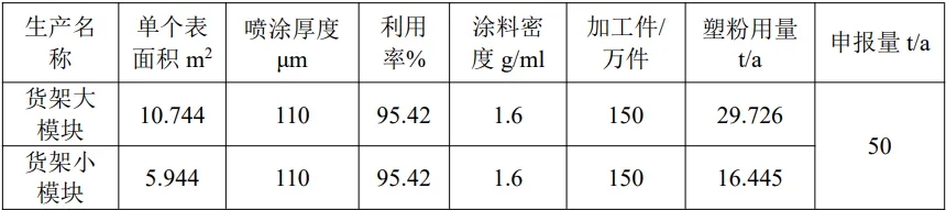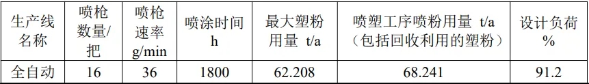 由上表可知,本項目理論上所需塑粉用量為46.171t/a,環(huán)評申報量為50t/a, 塑粉用量合理。