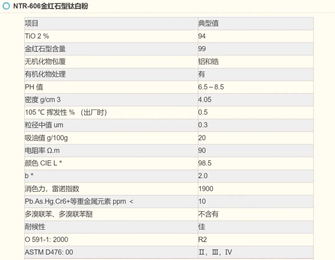 作為寧波新福的“明星產(chǎn)品”,NTR-606金紅石型鈦白粉的優(yōu)勢體現(xiàn)在多維度。光學(xué)與外觀性能上,其獨特的良好藍(lán)色相;應(yīng)用性能上,高分散性確保在涂料生產(chǎn)中均勻分散,高耐候性可抵御紫外線暴曬、風(fēng)雨侵蝕等極端環(huán)境,高遮蓋力能減少鈦白粉用量以降低企業(yè)成本,出色穩(wěn)定性更能讓涂料長期保持鮮艷色澤。此外,NTR-606還具備耐光、耐熱、耐磨、耐堿、耐硫、耐稀酸等全方位耐候特性,在國內(nèi)鈦白粉存量市場中處于領(lǐng)先地位,不僅可替代進(jìn)口產(chǎn)品,更遠(yuǎn)銷美國、歐洲、中東、日韓、南美等全球多地。