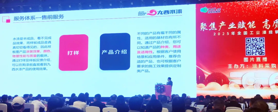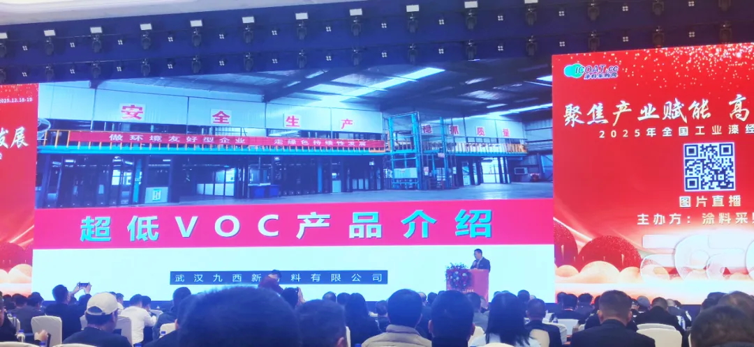 在這場千人規(guī)模的會議當(dāng)中,九西水漆技術(shù)應(yīng)用總監(jiān)李志斌先生作《九西水漆超低VOC產(chǎn)品介紹》的主題分享,現(xiàn)場為大家深度介紹了九西水漆研發(fā)的超低VOC產(chǎn)品,以“零污染、高耐候”的卓越性能,為行業(yè)樹立了綠色標(biāo)桿。