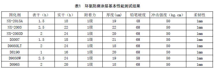 環(huán)氧防腐涂層基本性能測試結(jié)果見表1。