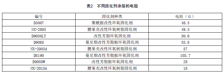 不同固化劑涂層阻抗測試值見表2。