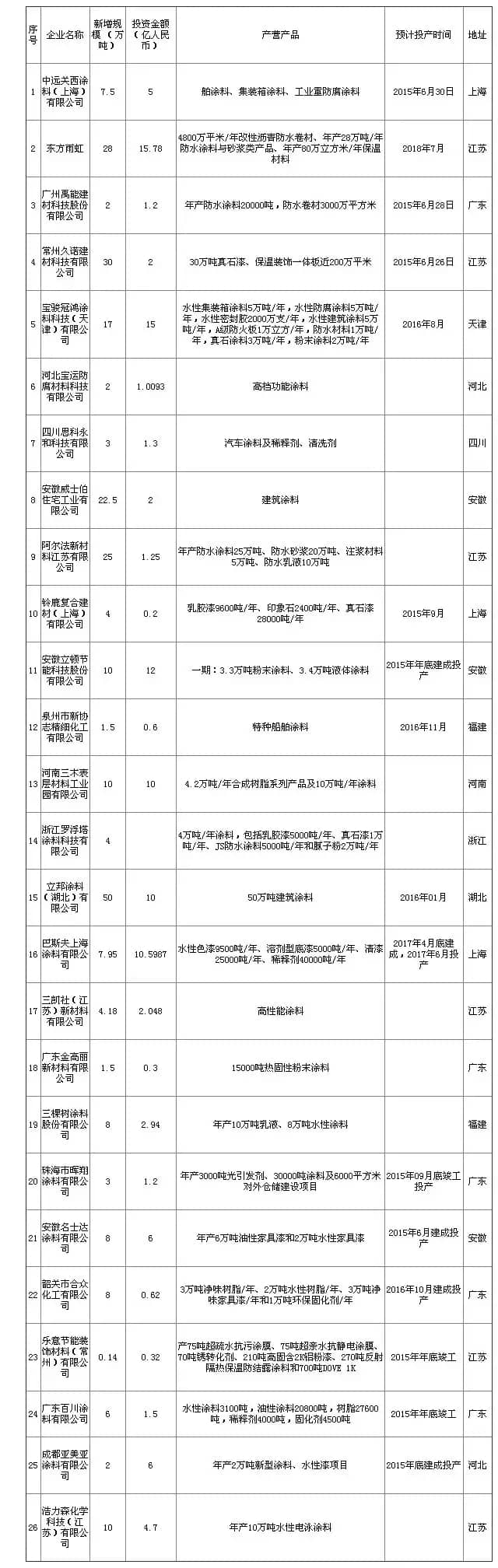 上半年涂料行業(yè)新建及投產(chǎn)情況