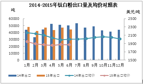 從上表可見,實(shí)際上在1季度我國鈦白粉出口還是保持了正常的增長(zhǎng)速度,但進(jìn)入2季度出口增速下滑非常明顯,二季度出口僅為135079.57,同比減少12.14%,而這減少的將近20000噸的量,將艱難的轉(zhuǎn)移到國內(nèi)市場(chǎng)銷售,進(jìn)一步增加國內(nèi)市場(chǎng)的銷售壓力。
