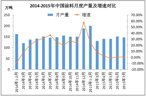 進入2015年后,我國涂料月度產量增速接連下滑,一方面與其下游房地產低迷走勢緊密相關,另一方面終端消費能力持續(xù)偏弱,建筑涂料以外的其他多種涂料領域亦無明顯增長。涂料行業(yè)作為乙二醇丁醚的主要下游,其行業(yè)景氣度低迷對單丁醚的需求量產生明顯的影響。另外進入2015年國家對環(huán)保政策的愈加嚴格,多數環(huán)保產品受到追捧,乙二醇單丁醚整體需求量亦有所萎縮。