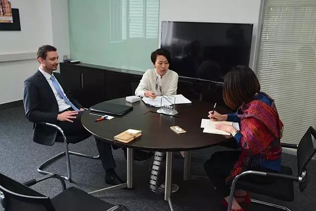 中國涂料采購網(wǎng)市場總監(jiān)張馨元(右)走進(jìn)哈沃科技