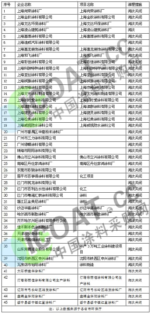 上海、廣東數(shù)十家涂料項目被淘汰關(guān)閉(附名單)